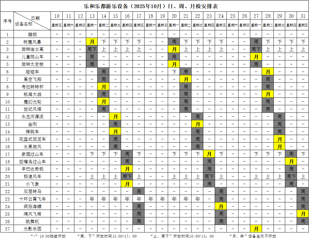 4、游乐设备10:00后依次开放,设备停止运行时间:17:30