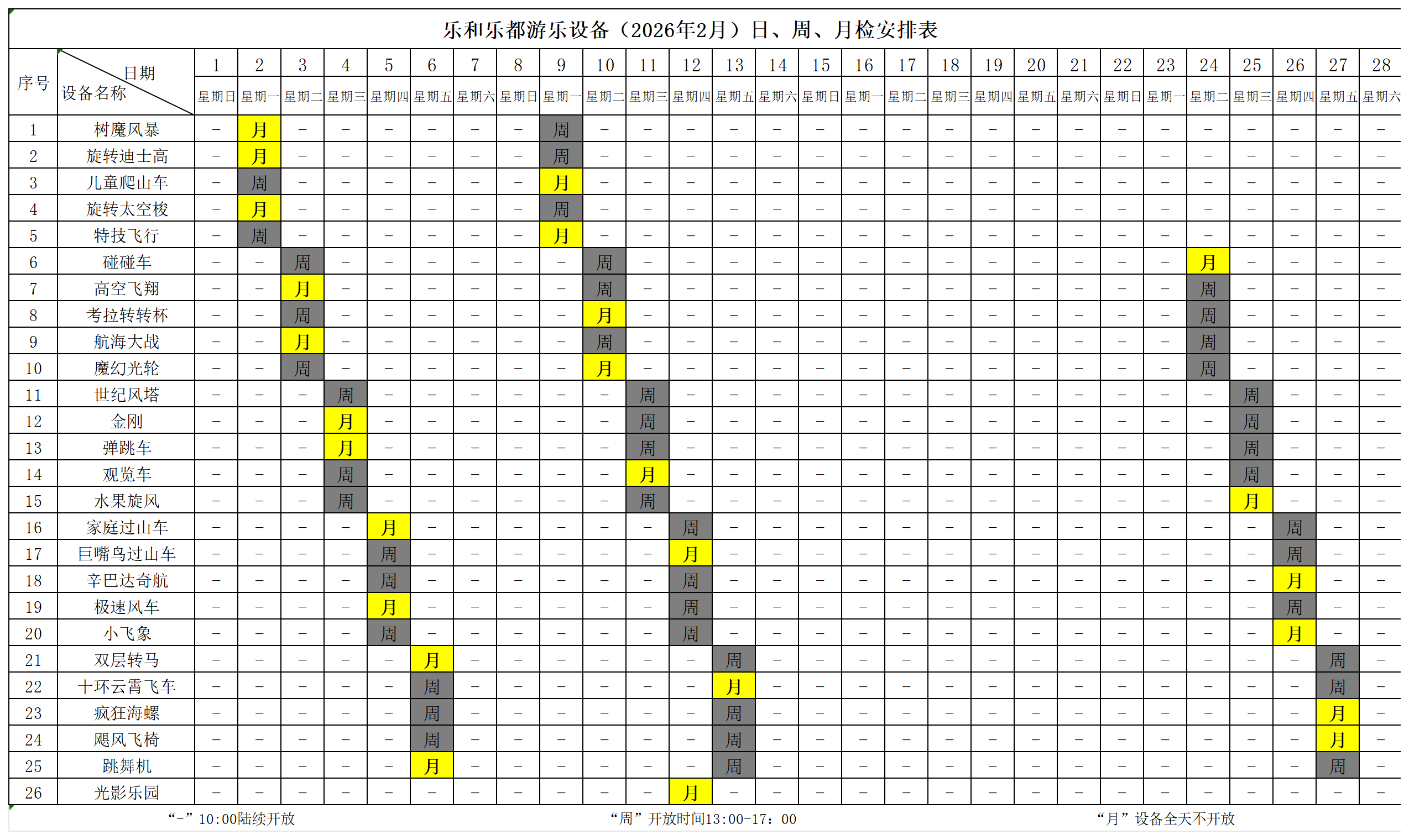 为保障安全,部分设备设有体重限制。敬请游客在乘坐前,仔细阅读现场公示的具体要求。