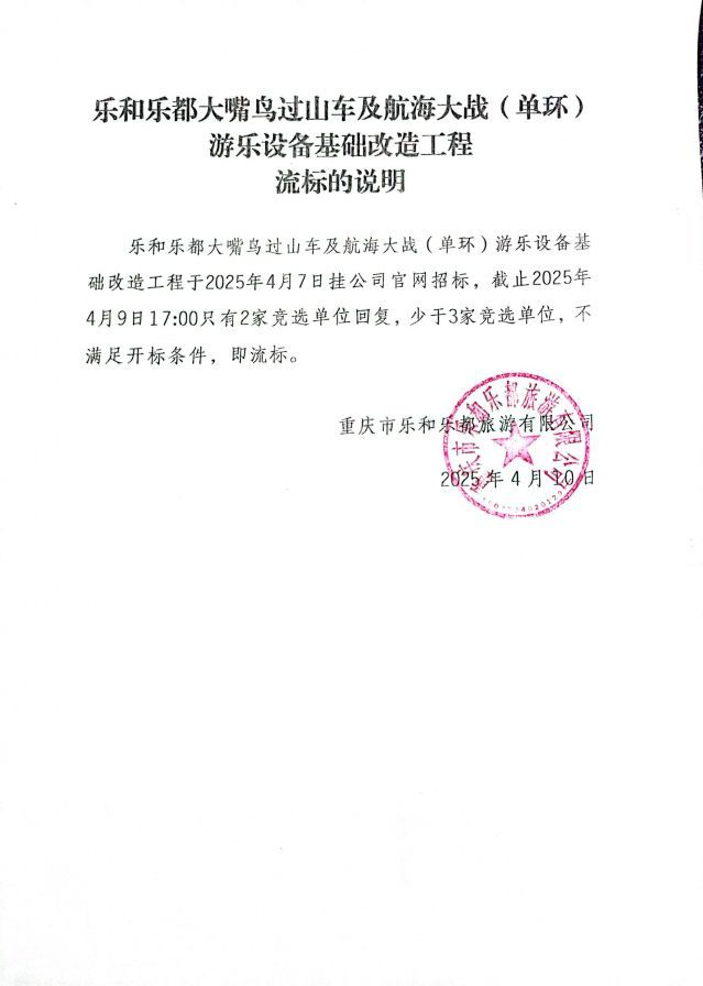 乐和乐都大嘴鸟过山车及航海大战(单环)游乐设备基础改造工程流标的说明