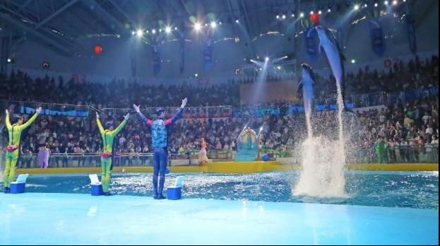 利用LED大屏,期间穿插海洋动物科普知识有奖问答