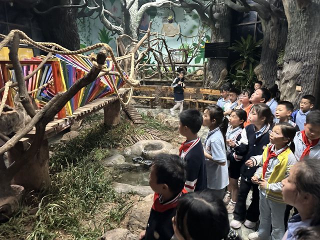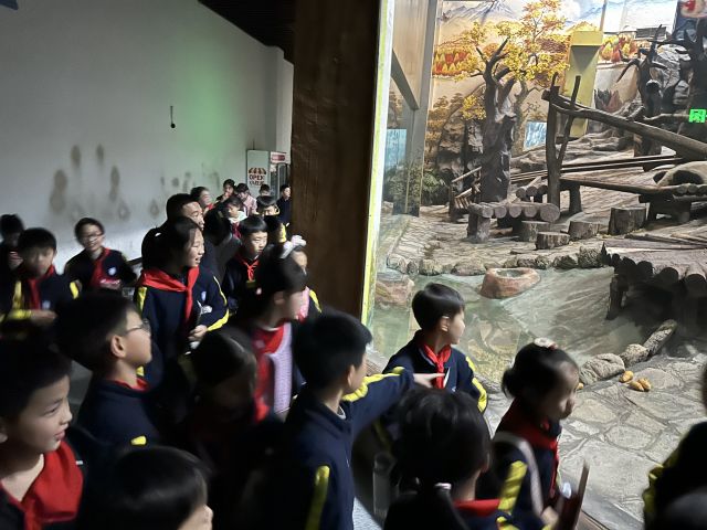 通过智能互动装置等引导观察大熊猫行为特征:内八字走路、爬树高手、气味标记等,进一步强化科普知识