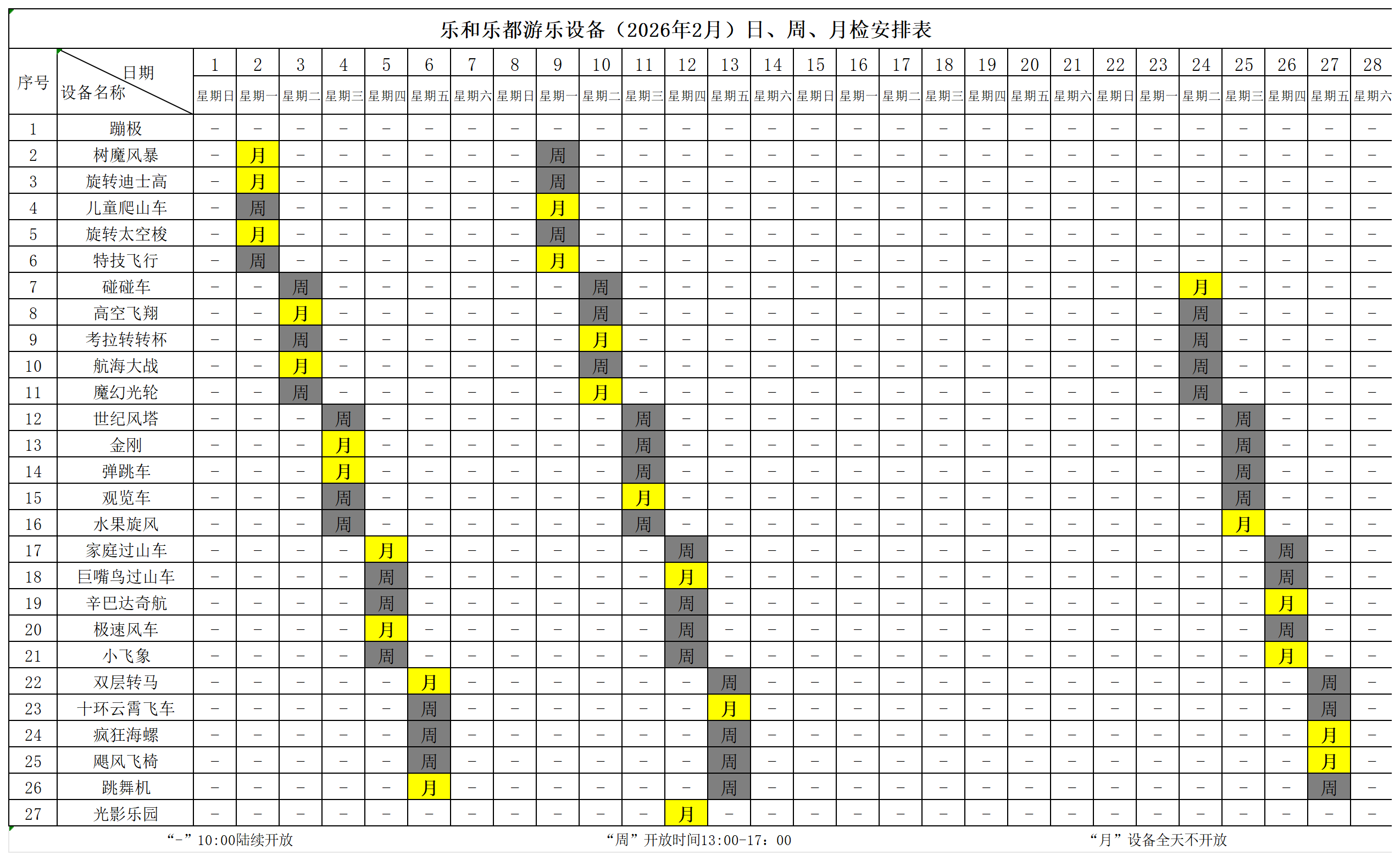 为保障安全,部分设备设有体重限制。敬请游客在乘坐前,仔细阅读现场公示的具体要求。