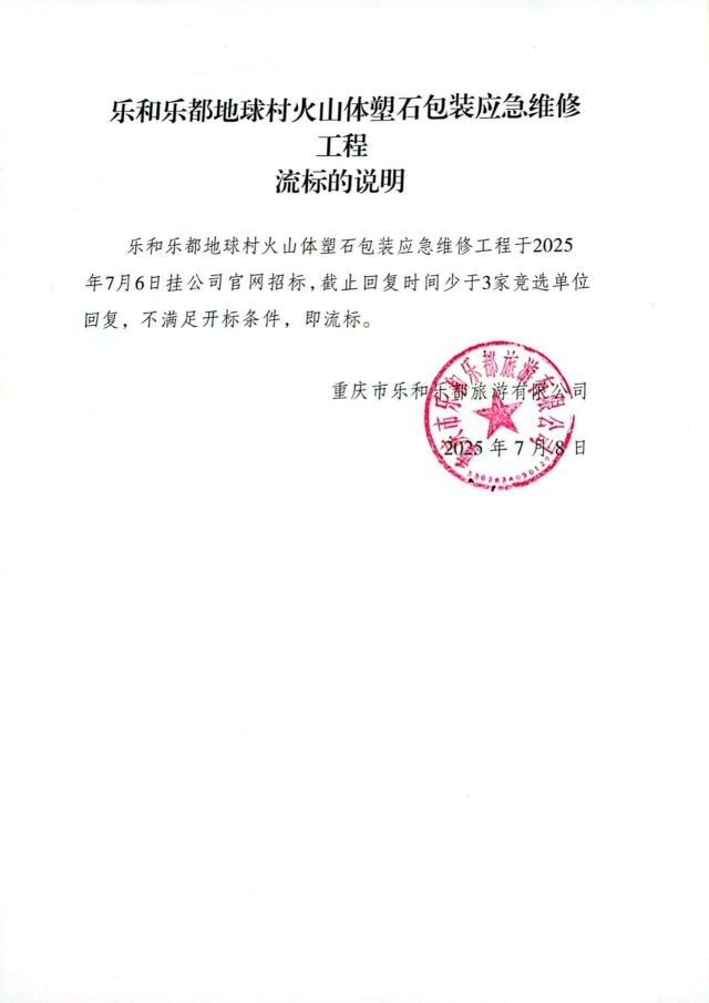 乐和乐都地球村火山体塑石包装应急维修工程流标的说明