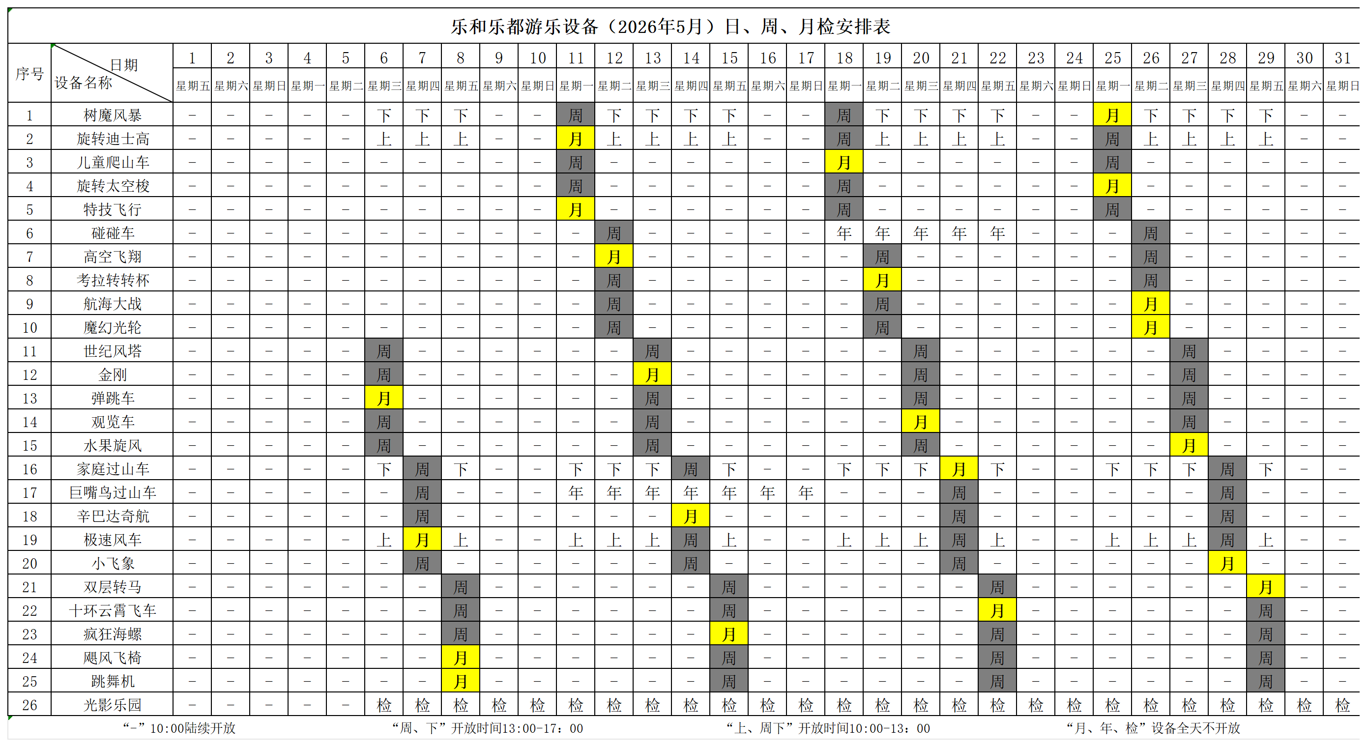 三、游乐设备安排表